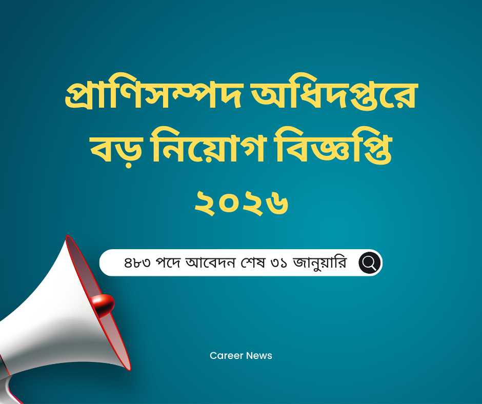 প্রাণিসম্পদ অধিদপ্তর (Department of Livestock Services – DLS) রাজস্ব খাতভুক্ত শূন্য পদে নিয়োগের বিজ্ঞপ্তি প্রকাশ করেছে। এই নিয়োগের মাধ্যমে ১৪তম গ্রেডে মোট ৪৮৩ জন জনবল নিয়োগ দেওয়া হবে। আগ্রহী প্রার্থীরা নির্ধারিত সময়ের মধ্যে অনলাইনে আবেদন করতে পারবেন।